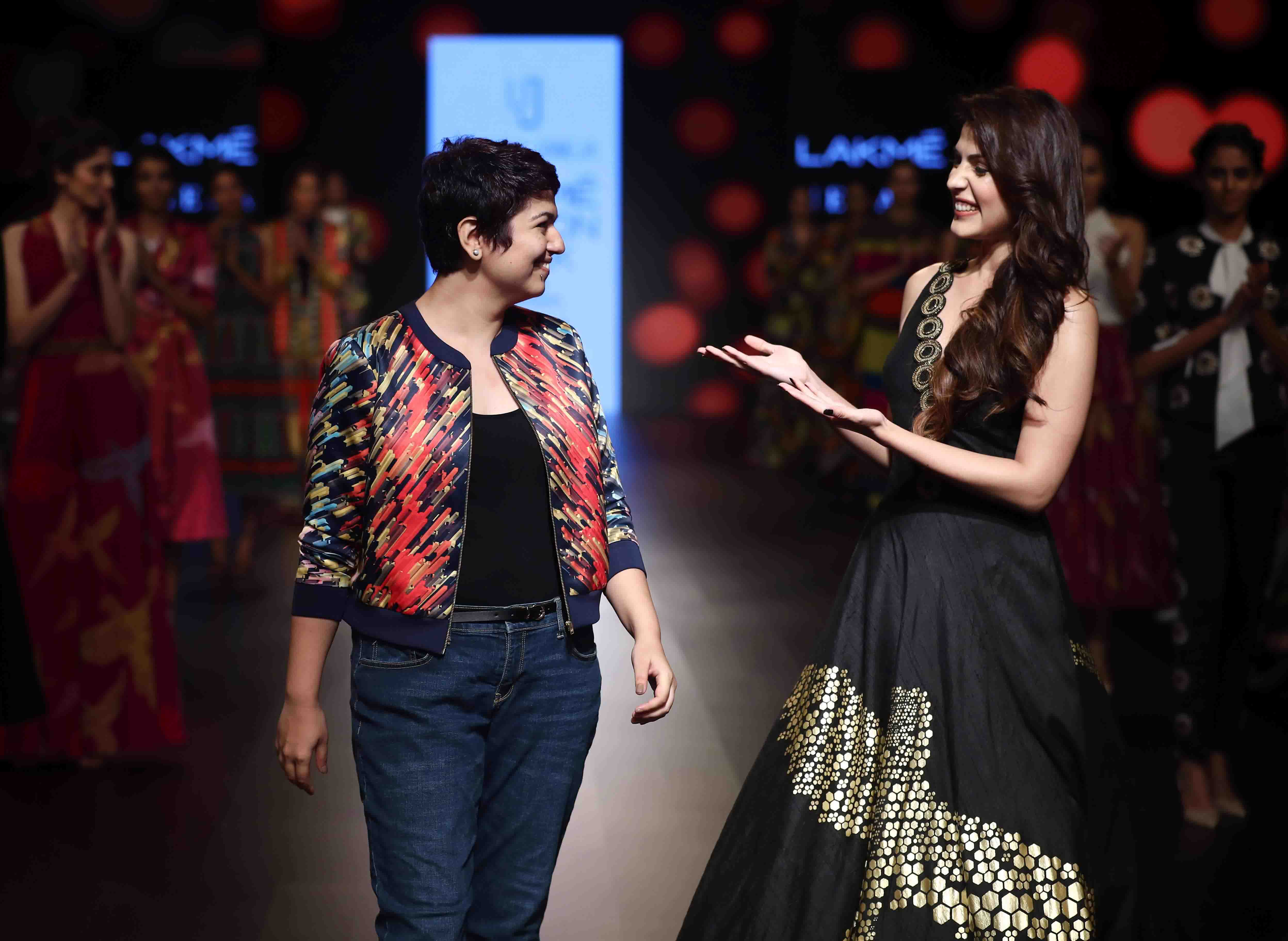 A UNIQUE GRAPHIC FASHION PRESENTATION BY URVASHI JONEJA WAS A GREAT VISUAL EXPERIENCE AT LAKMÉ FASHION WEEK WINTER/FESTIVE 2018 CineEye, August 23, 2018September 26, 2019 Inspirations for Urvashi Joneja’s collections have always been unique visual experiences for the viewers. For Lakmé Fashion Week Winter/Festive 2018, Urvashi’s line called “Away” revolved around the imagery of flying away and breaking through the glass ceiling. It was a look that played creatively with graphics that was an unconventional merger of shattered fragments, which eventually came together as visuals of flying birds like eagles and parrots. The colour story reflected the full segment of hues that would appear when light shines through glass fragments. So red, blue, green, yellow and purple shimmered on the runway. Detailing was given prime importance as careful pleating and 3D texturing added to the beauty of the graphic forms on various fabrics. Layering played a major role for nearly every ensemble as the feminine drapes flowed gracefully around the models. The striking all white latticework halter-top over a floral appliquéd sheer dress, fitted the theme of the show. The intricate laced, corset, choli with matching sari in a kaleidoscope of abstract designs and colours as well as the red fully textured lean dress were perfect graphic examples. Luxury was very much apparent when a flared white long-sleeved maxi with a colourful parrots print sprinkled came down the ramp. The sun yellow angarkha style ensemble was dappled with cascading geometric motifs in blue, red and green but teamed with a white inner and green/black dotted parallels. For a fun entry it was sun yellow pants again with graphic motifs, but this time styled with a red checked balloon-sleeved blouse. For a show stopping garment it was the beautiful Bollywood actress and video jockey, Rhea Chakraborty, in a spectacular black gown with two huge eagles in 3D appliqué work that stole hearts. Actress Aahana Kumra, from ‘Lipstick Under My Burkha’ fame was also in attendance, supporting the talented designer and looking gorgeous in one of her creations! Fashion and Style